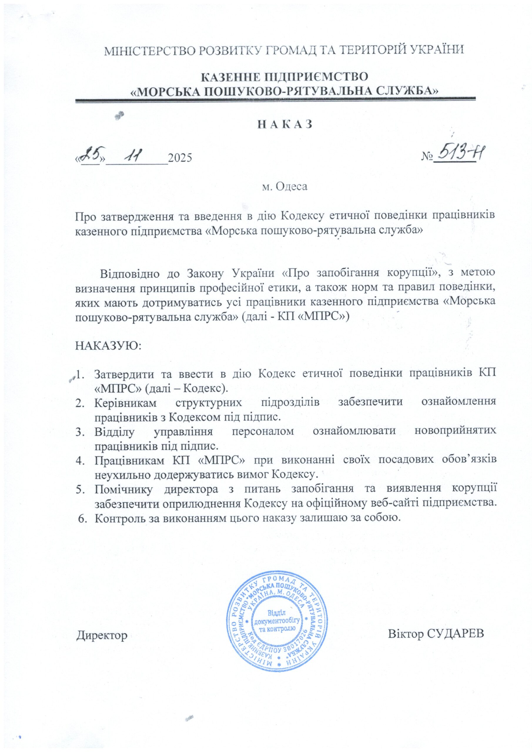 Кодекс етичної поведінки працівників казенного підприємства “Морська пошуково-рятувальна служба”